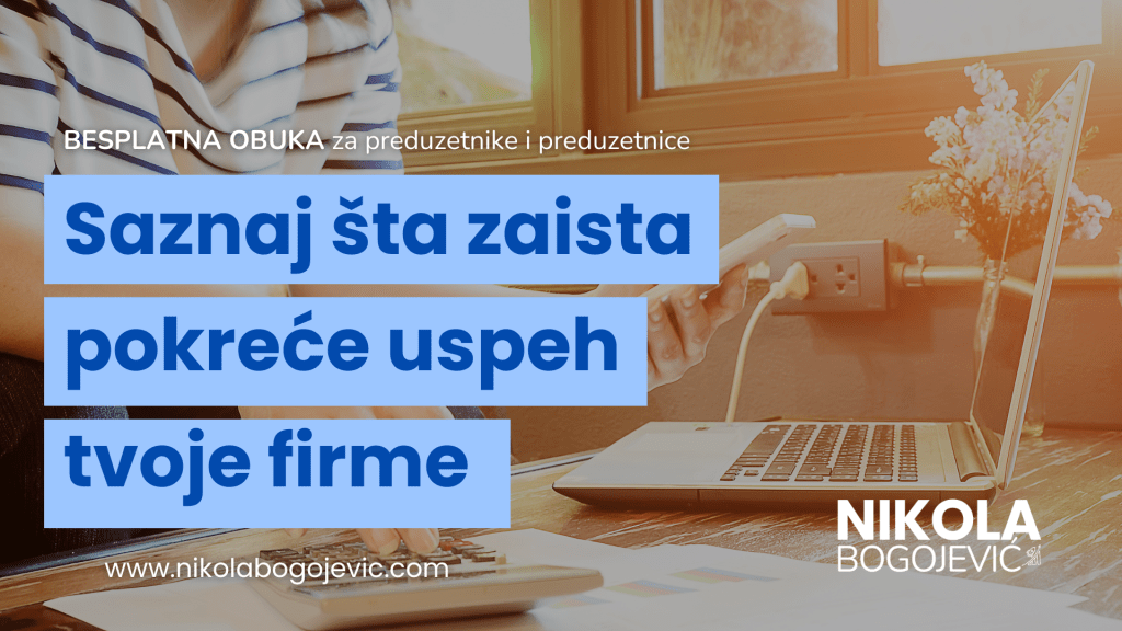 home page BESPLATNA OBUKAOnlajn programBlogO meni Facebook Instagram TikTok YouTube Onlajn program za preduzetnike i preduzetnice Unapredi svoj biznis kroz rad na sebi SAZNAJ VIŠE BLOG Kada je pravo vreme za promenu Kako doneti ispravnu odluku Osećaš li usamljenost dok postižeš poslovne rezultate? Pokretanje drugog biznisa i zašto ne Šta se dogodi kada prevaziđeš unutrašnje strahove Odličan marketing nije i odličan rezultat Kvalitetan tim – zašto ga nemaš? BESPLATNA OBUKA Facebook Instagram TikTok YouTube BESPLATNA OBUKAOnlajn programBlogO meni Politika privatnosti